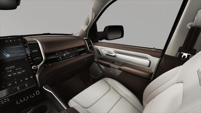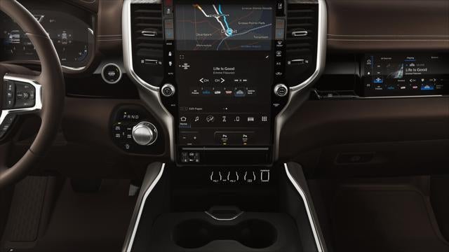 This Ram 1500 is equipped with the following features: Laramie Level 2 Equipment Group (14.4 Touchscreen Display, 4G LTE Wi-Fi Hot Spot, Cluster 12 TFT Color Display, Connected Travel and Traffic Services, Connectivity - US/Canada, Front Passenger Interactive Display, GPS Navigation, Harman/Kardon 19 Speaker Premium Sound, Integrated Center Stack Radio, Integrated Voice Command with Bluetooth®, Power Tailgate, Radio: Uconnect 5 Nav with 14.4 Display, Rain Sensitive Windshield Wipers, SiriusXM Radio Service, SiriusXM with 360L, and USB Host Flip), Quick Order Package 27H Laramie, 10 Speakers, 4-Wheel Disc Brakes, ABS brakes, Active Noise Control System, Adjustable pedals, Air Conditioning, Alloy wheels, AM/FM radio: SiriusXM with 360L, Apple CarPlay/Android Auto, Audio memory, Auto High-beam Headlights, Auto Power-Folding Mirrors, Auto-dimming door mirrors, Auto-Dimming Exterior Driver Mirror, Auto-dimming Rear-View mirror, Automatic temperature control, Brake assist, Bumpers: chrome, Chrome Exterior Mirrors, Compass, Convex Wide-Angle Exterior Mirror Insert, Delay-off headlights, Driver door bin, Driver vanity mirror, Dual front impact airbags, Dual front side impact airbags, Electronic Stability Control, Exterior 115V AC Outlet, Exterior Mirrors Courtesy Lamps, Exterior Mirrors with Heating Element, Exterior Mirrors with Memory, Exterior Mirrors with Supplemental Signals, Front anti-roll bar, Front Bucket Seats, Front Center Armrest w/Storage, Front dual zone A/C, Front fog lights, Front reading lights, Front wheel independent suspension, Fully automatic headlights, Garage door transmitter, Heated door mirrors, Heated front seats, Heated rear seats, Heated steering wheel, Illuminated entry, Leather steering wheel, Leather Trimmed Bucket Seats, Low tire pressure warning, Memory seat, Navigation System, Occupant sensing airbag, Off-Road Information Pages, Outside temperature display, Overhead airbag, Overhead console, Panic alarm, ParkView Rear Back-Up Camera, Passenger door bin, Passenger vanity mirror, Pedal memory, Power door mirrors, Power driver seat, Power passenger seat, Power steering, Power windows, Radio data system, Radio: Uconnect 5 Navigation with 12.0 Display, RAM Grille Badge - Chrome, RamBox Cargo Management System, Rear anti-roll bar, Rear reading lights, Rear seat center armrest, Rear step bumper, Remote keyless entry, Security system, Speed control, Split folding rear seat, Steering wheel mounted audio controls, Tachometer, Telescoping steering wheel, Tilt steering wheel, Traction control, Trailer Brake Control, Trip computer, Turn signal indicator mirrors, Variably intermittent wipers, Ventilated front seats, Voltmeter, and Wheels: 20 x 9 Premium Paint/Polish. Recent Arrival!