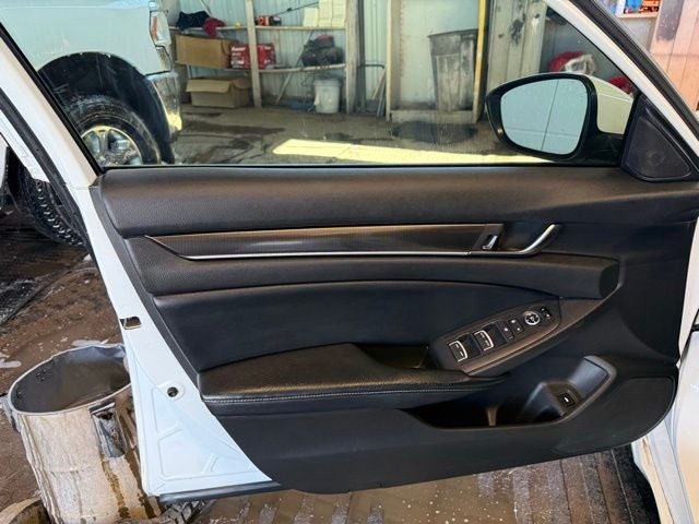 This Honda Accord is equipped with the following features: Exl Cloth, 4-Wheel Disc Brakes, 8 Speakers, ABS brakes, Air Conditioning, Alloy wheels, AM/FM radio, Apple CarPlay/Android Auto, Auto High-beam Headlights, Automatic temperature control, Brake assist, Bumpers: body-color, Cloth Seat Trim, Delay-off headlights, Driver door bin, Driver vanity mirror, Dual front impact airbags, Dual front side impact airbags, Electronic Stability Control, Emergency communication system: HondaLink, Exterior Parking Camera Rear, Four wheel independent suspension, Front anti-roll bar, Front Bucket Seats, Front Center Armrest, Front dual zone A/C, Front fog lights, Front reading lights, Fully automatic headlights, Illuminated entry, Knee airbag, Leather Shift Knob, Leather steering wheel, Low tire pressure warning, Occupant sensing airbag, Outside temperature display, Overhead airbag, Overhead console, Panic alarm, Passenger door bin, Passenger vanity mirror, Power door mirrors, Power driver seat, Power steering, Power windows, Radio data system, Radio: 180-Watt AM/FM Audio System, Rear anti-roll bar, Rear seat center armrest, Rear window defroster, Remote keyless entry, Security system, Speed control, Speed-sensing steering, Speed-Sensitive Wipers, Split folding rear seat, Spoiler, Steering wheel mounted audio controls, Tachometer, Telescoping steering wheel, Tilt steering wheel, Traction control, Trip computer, Variably intermittent wipers, and Wheels: 19 Machine-Finished Alloy w/Black Inserts. Recent Arrival! Odometer is 4655 miles below market average! 29/35 City/Highway MPG