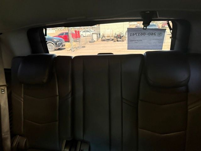 This Cadillac Escalade is equipped with the following features: Driver Awareness Package (Forward Collision Alert, IntelliBeam Automatic High Beam On/Off, Lane Change Alert w/Side Blind Zone Alert, Lane Keep Assist w/Lane Departure Warning, Low Speed Forward Automatic Braking, Rear Cross Traffic Alert, and Safety Alert Seat), Interior Protection Package (LPO) (1st 2nd & 3rd Row All-Weather Floor Mats (LPO) and All-Weather Cargo Mat (LPO)), Preferred Equipment Group 1SB (Power Configurable Second Row Bucket Seats, Power Tilt-Sliding Sunroof w/Express-Open/Close, Rear Camera Mirror, Rear Camera Mirror Washer, and Reconfigurable 4-Color Head-Up Display), Theft-Deterrent Package (Inclination Sensor, Theft-Deterrent Alarm System, and Vehicle Interior Movement Sensor), Black Leather, 12-Way Power Front Passenger Seat Adjuster, 16 Speakers, 2-Presets Memory For Driver Seat Adjuster, 3.23 Axle Ratio, 3rd row seats: split-bench, 4-Wheel Disc Brakes, ABS brakes, Adaptive suspension, Adjustable pedals, Air Conditioning, Alloy wheels, AM/FM radio: SiriusXM, Apple CarPlay/Android Auto, Auto High-beam Headlights, Auto tilt-away steering wheel, Auto-dimming door mirrors, Auto-leveling suspension, Automatic temperature control, Black Front License Plate Bracket, Bodyside moldings, Bose Centerpoint 16 Speaker Surround Sound System, Brake assist, Bumpers: body-color, CD player, Compass, Delay-off headlights, Driver door bin, Driver vanity mirror, Dual front impact airbags, Dual front side impact airbags, DVD-Audio, Electronic Stability Control, Emergency communication system: OnStar Protection, Exterior Parking Camera Rear, Front anti-roll bar, Front Bucket Seats, Front Center Armrest w/Storage, Front dual zone A/C, Front reading lights, Front wheel independent suspension, Fully automatic headlights, Garage door transmitter, HD Radio, Heads-Up Display, Heated & Cooled Driver & Front Passenger Seats, Heated door mirrors, Heated front seats, Heated rear seats, Heated steering wheel, Illuminated entry, Leather Seating Surfaces, Leather Shift Knob, Leather steering wheel, Low tire pressure warning, Magnetic Ride Control Suspension, Memory seat, Navigation System, Occupant sensing airbag, Outside temperature display, Overhead airbag, Overhead console, Panic alarm, Passenger door bin, Passenger vanity mirror, Pedal memory, Polished Exhaust Tip, Power door mirrors, Power driver seat, Power Liftgate, Power moonroof, Power passenger seat, Power steering, Power windows, Radio data system, Radio: AM/FM Cadillac User Experience w/Nav, Rain sensing wipers, Rear air conditioning, Rear anti-roll bar, Rear audio controls, Rear reading lights, Rear Seat Entertainment System, Rear window defroster, Rear window wiper, Remote keyless entry, Roof rack: rails only, Security system, Single Slot CD/MP3 Player, SiriusXM NavTraffic, SiriusXM Radio, Speed control, Split folding rear seat, Spoiler, Steering wheel memory, Steering wheel mounted audio controls, Tachometer, Telescoping steering wheel, Tilt steering wheel, Traction control, Trip computer, Turn signal indicator mirrors, Variably intermittent wipers, Ventilated front seats, and Wheels: 22 x 9 7-Spoke Alloy w/Chrome Inserts.