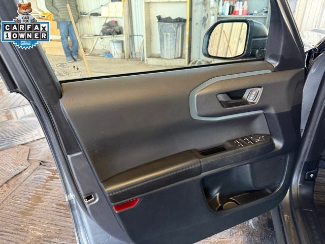 This Ford Bronco Sport is equipped with the following features: Equipment Group 400A, 3.80 Axle Ratio, 4-Wheel Disc Brakes, 6 Speakers, ABS brakes, Air Conditioning, Alloy wheels, AM/FM radio: SiriusXM, AM/FM Stereo, Auto High-beam Headlights, Automatic temperature control, Brake assist, Compass, Delay-off headlights, Driver door bin, Driver vanity mirror, Dual front impact airbags, Dual front side impact airbags, Electronic Stability Control, Emergency communication system: SYNC 3 911 Assist, Exterior Parking Camera Rear, Four wheel independent suspension, Front anti-roll bar, Front Bucket Seats, Front Center Armrest, Front fog lights, Front reading lights, Fully automatic headlights, Heated door mirrors, Heated front seats, Illuminated entry, Knee airbag, Low tire pressure warning, Occupant sensing airbag, Outside temperature display, Overhead airbag, Overhead console, Panic alarm, Passenger door bin, Passenger vanity mirror, Power door mirrors, Power driver seat, Power steering, Power windows, Radio data system, Rear anti-roll bar, Rear reading lights, Rear seat center armrest, Rear window defroster, Rear window wiper, Remote keyless entry, Roof rack: rails only, Security system, SiriusXM Radio, Speed control, Speed-sensing steering, Speed-Sensitive Wipers, Split folding rear seat, Steering wheel mounted audio controls, SYNC 3 Communications & Entertainment System, SYNC 3/Apple CarPlay/Android Auto, Tachometer, Telescoping steering wheel, Tilt steering wheel, Traction control, Trip computer, Unique Cloth Heated Sport Contour Bucket Seats, Variably intermittent wipers, and Wheels: 17 Carbonized Gray-Painted Aluminum. 21/26 City/Highway MPG